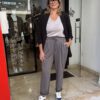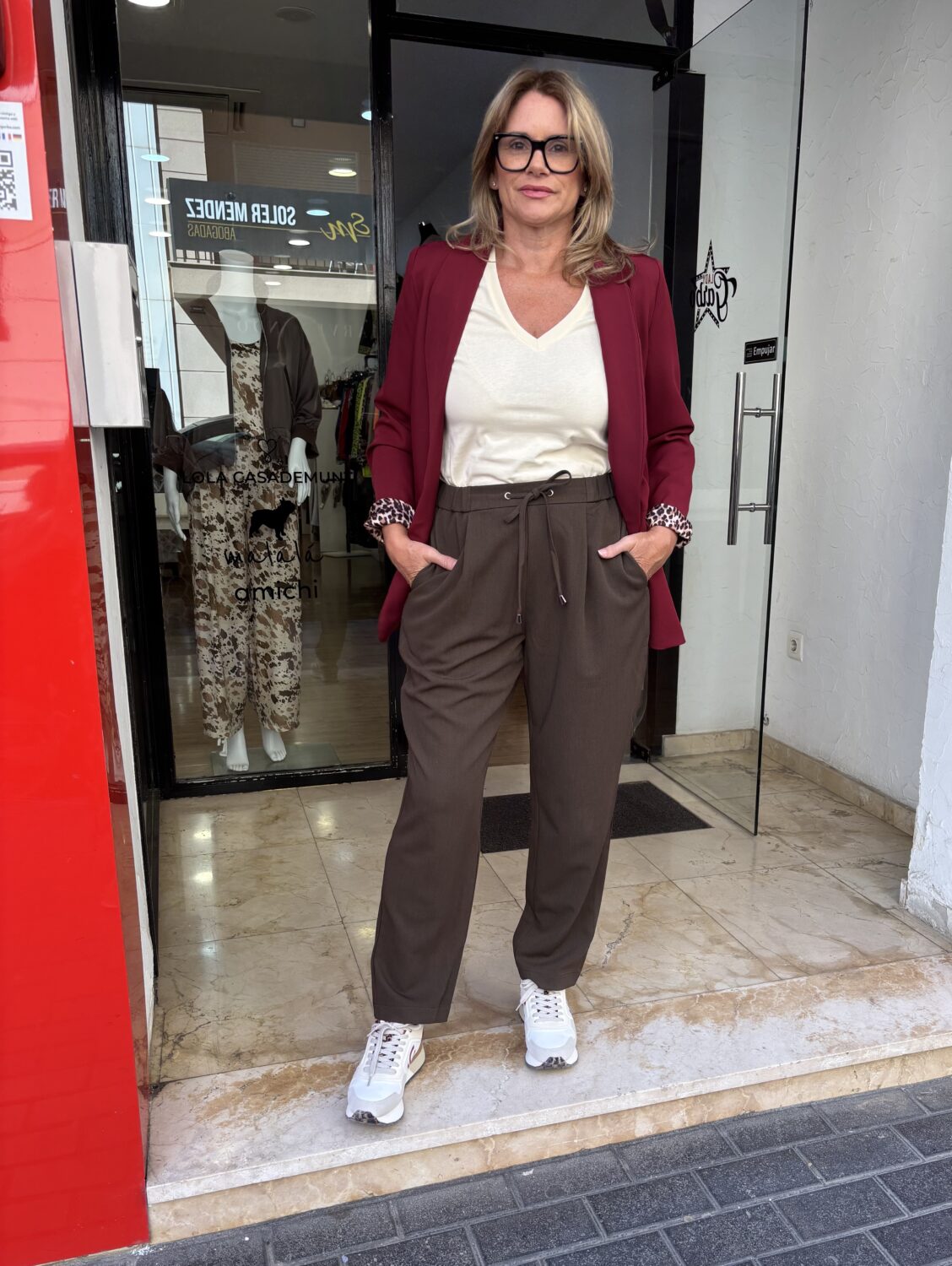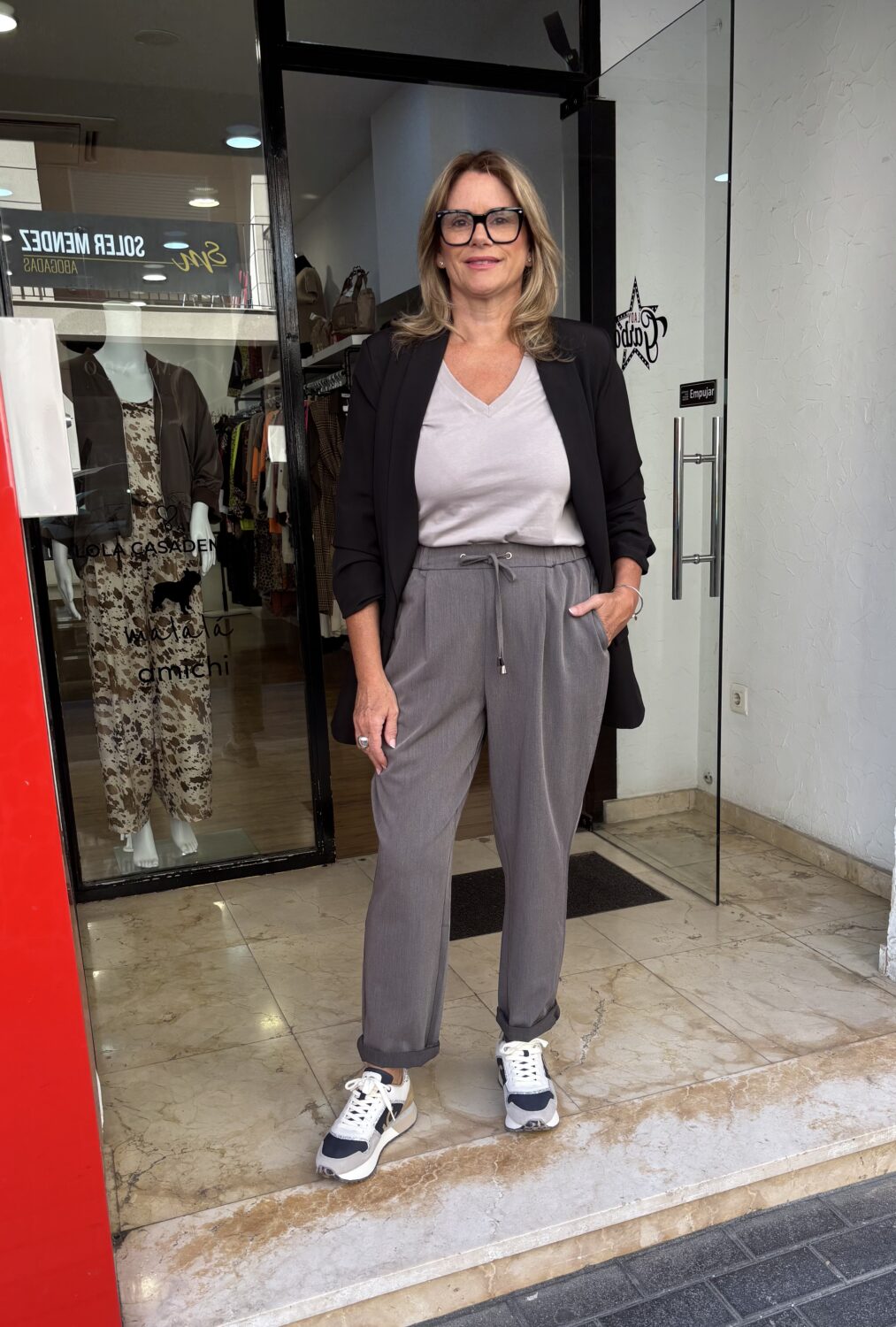Pantalón jogger con corte recto y cintura elástica en la parte trasera, ajustable con cordón.
