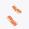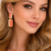 Pendientes modernos de diseño rectangular con combinación de metal dorado y acrílico pigmentado. Textura única y cierre de tuerca. Ideales para dar un toque atrevido a cualquier outfit.