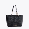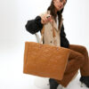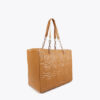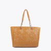 Shopper elegante en efecto piel con acogedor acolchado y logotipo en relieve. Incluye asa de cadena dorada combinada para un toque moderno. Amplio interior con bolsillo con cremallera para mayor organización.